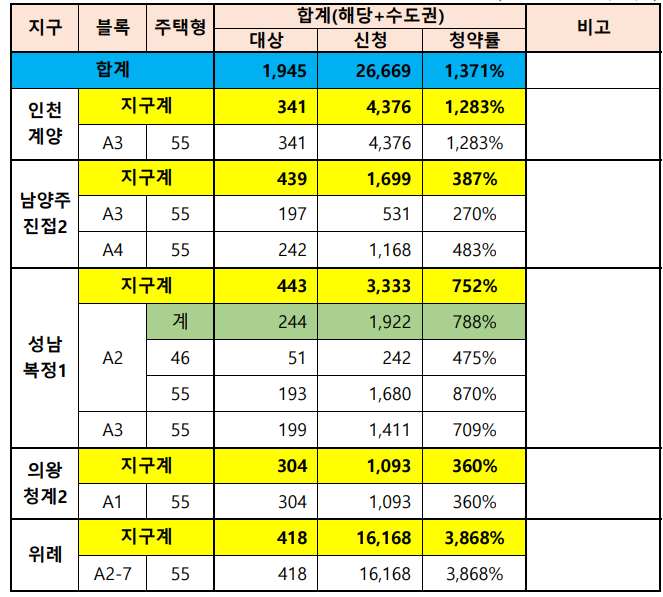 46형이고 55형이고 전부 다 경쟁률 미칠듯이 높았습니다. 위례만 해도 38:1 나왔고요.